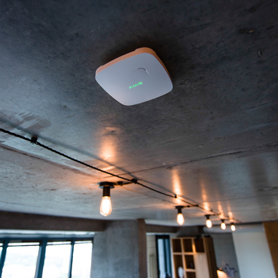 It can operate independently from the hub, emitting a fire alarm by means of a built-in siren. Several detectors indicate an alarm simultaneously.