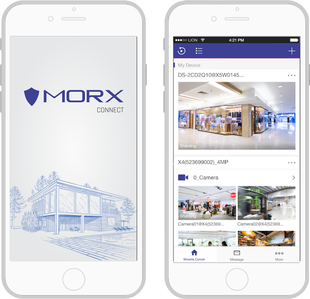 | Morx Connect Mobile application is designed for organization efficiently work and operate security devices from mobile or tablet. The application gives the ability to view live pictures, playback real-time video, and alert notifications remotely, it also helps user and administrators to monitor their home and business from anywhere at any time. Easy to Install P2P Access High Compatibility Enhanced Security |