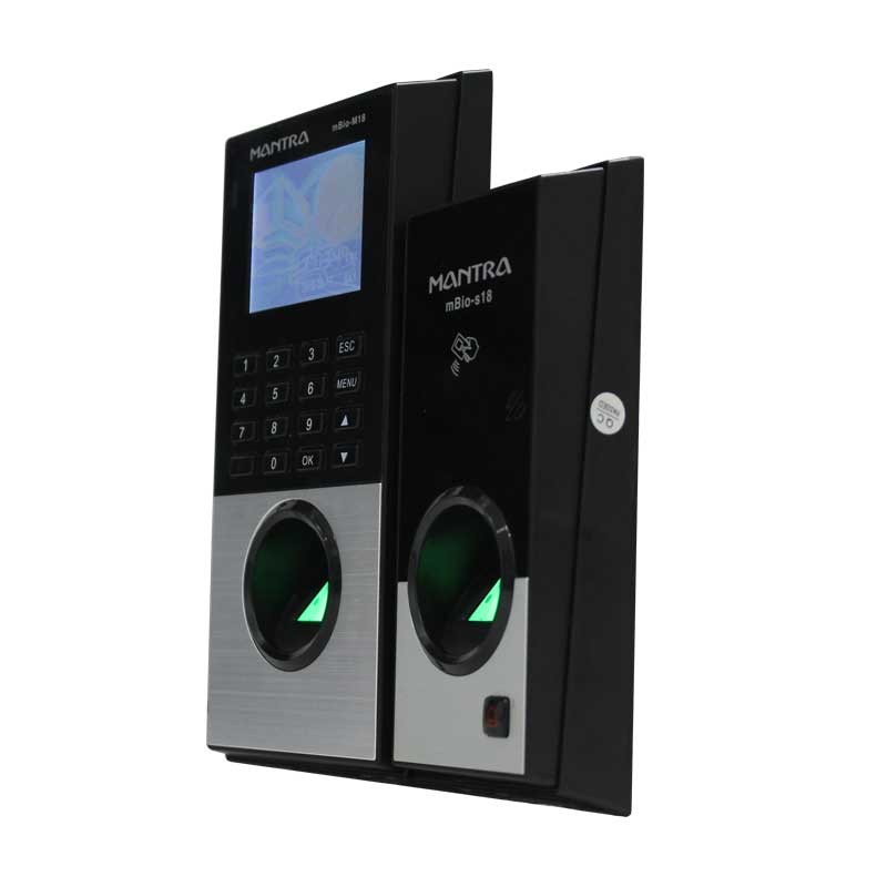 mBio-M18 is a professional Color display fingerprint time attendance and access control system designed for medium to large size enterprise, it integrates fingerprint identification, built in RFID card reader, with TCP/IP Communication. It is possible to integrate all kind of applications like ERP, HRMS, Payroll, Attendance and SAP with the device. It support various communication interface like TCPIP, USB to communicate with Host PC. It also gives real-time transactions on transactions monitor.